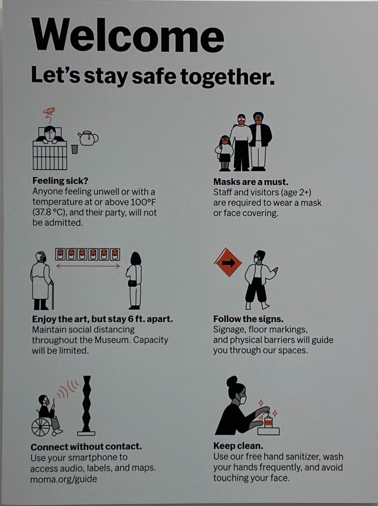 Instead of taking the train, I decided to drive to the Museum of Modern Art. Parking at the Icon Garage (affiliated with MoMA) I hopped out and found myself minutes away from the museum’s entrance. Upon entry, Guests are instructed to stand on a mat and have a machine take their temperature. Even without a scheduled ticket, I managed to secure admittance. Typically, guests are encouraged to reserve a time slot in advance online but, I did not meet any problems without one.