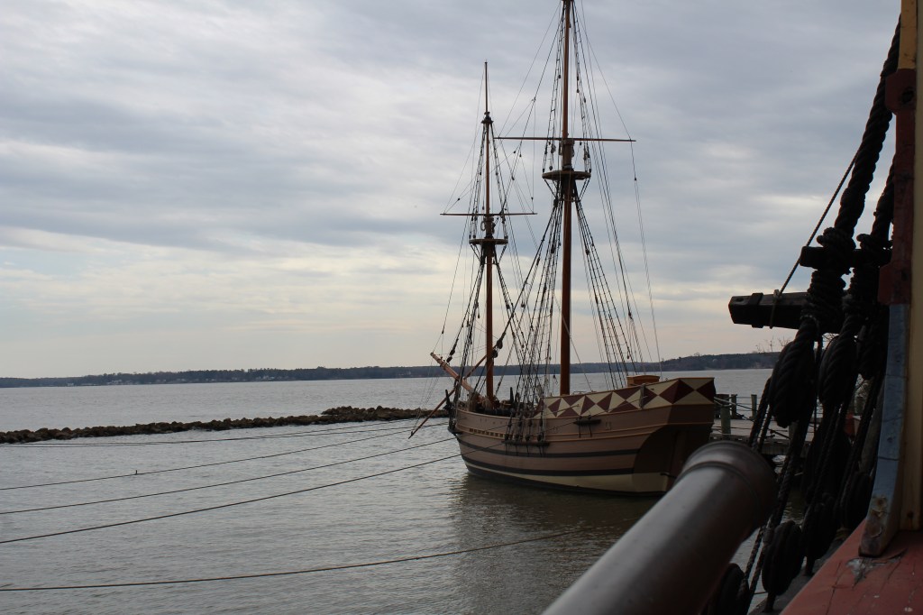 Although I managed to see a great deal on this trip, it is important to note that I encountered several closed areas due to COVID-19. This became apparent at James Fort, which is a recreation of the fortified palisade from 1610-1614. Some of the dwellings and enclosed spaces were closed to visitors. However, the Anglican church, and storage house were open, and guests could walk inside. Similarly, I toured the deck of the Susan Constant, but visitors were barred from exploring interior portions of the vessel.