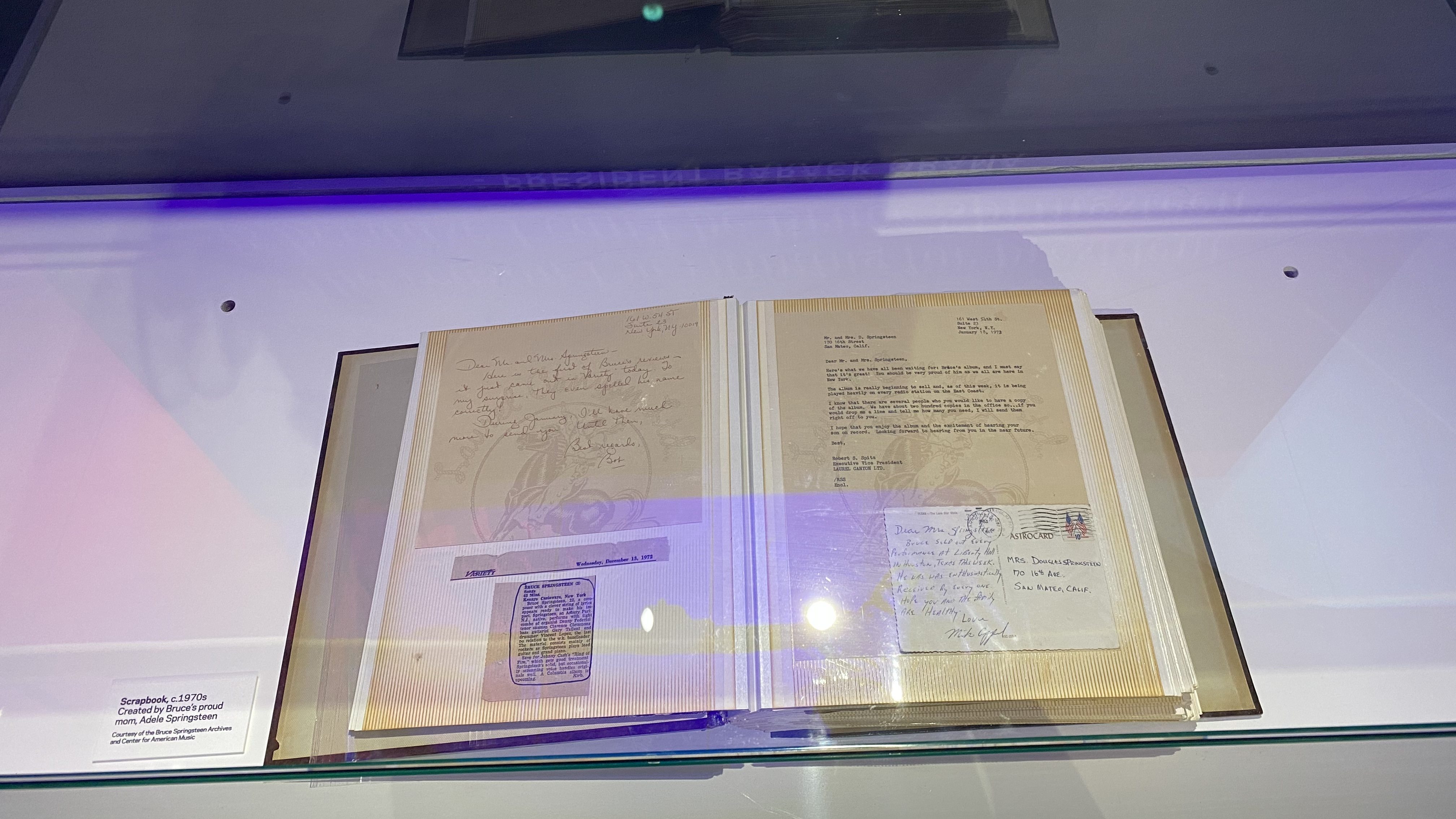 If I had to be critical of one aspect of this exhibit, it would be the exhibit labels. In my opinion, the majority of the labels did not provide enough context or convey the significance of objects. The one display that sticks out in my mind is an open scrapbook in a display case. Unless you read the small print credit line on the exhibit label, you would not know that Springsteen’s mother made this unique artifact. Furthermore, it does not mention how she collected newspaper clippings, magazine covers, letters, and postcards that documented her son’s rise to fame. Without providing a few sentences of context on the exhibit label, the significance of that work as a documentary source is lost. Springsteen fans may have already amassed enough knowledge to recognize the piece on first sight, but others museum visitors may need a little more information.