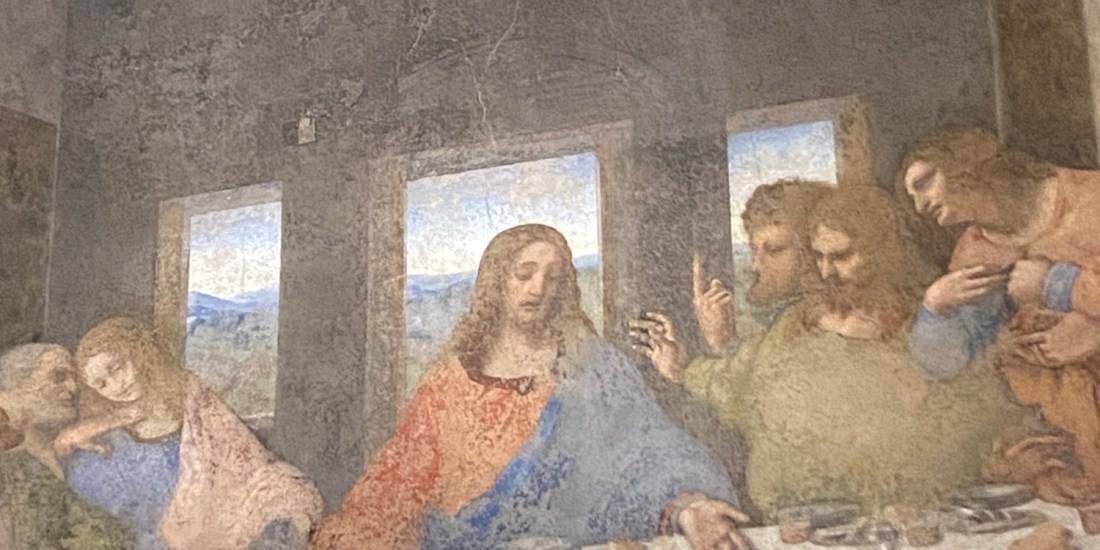 While planning a recent trip to Milan. I secured my “Open Table” reservation to see the work in person. The masterpiece is located on the northern wall in the refectory of Santa Maria delle Grazie. It is paralleled by Giovanni Donato da Montorfano’s fresco of the Crucifixion. In order to lock-in my time for this excursion (as the tickets sold out a few months in advance), I elected to partake in a guided, walking tour of the Duomo di Milano and some surrounding tourist sites. The tour company handled securing the reservation, but guests are responsible for bringing a form of government issued ID on the tour – visitors must show this documentation in order to receive their ticket at the Santa Maria delle Grazie.