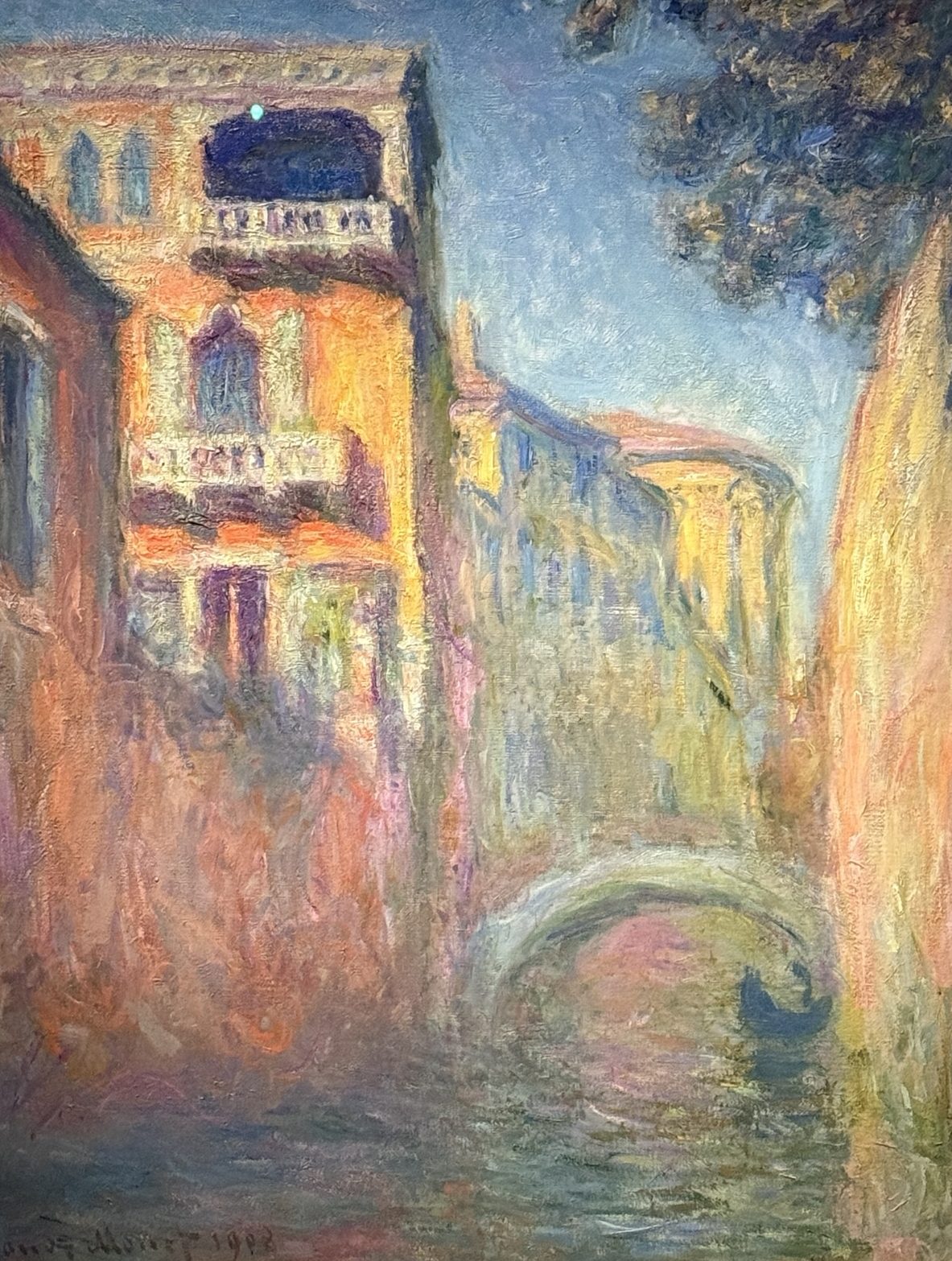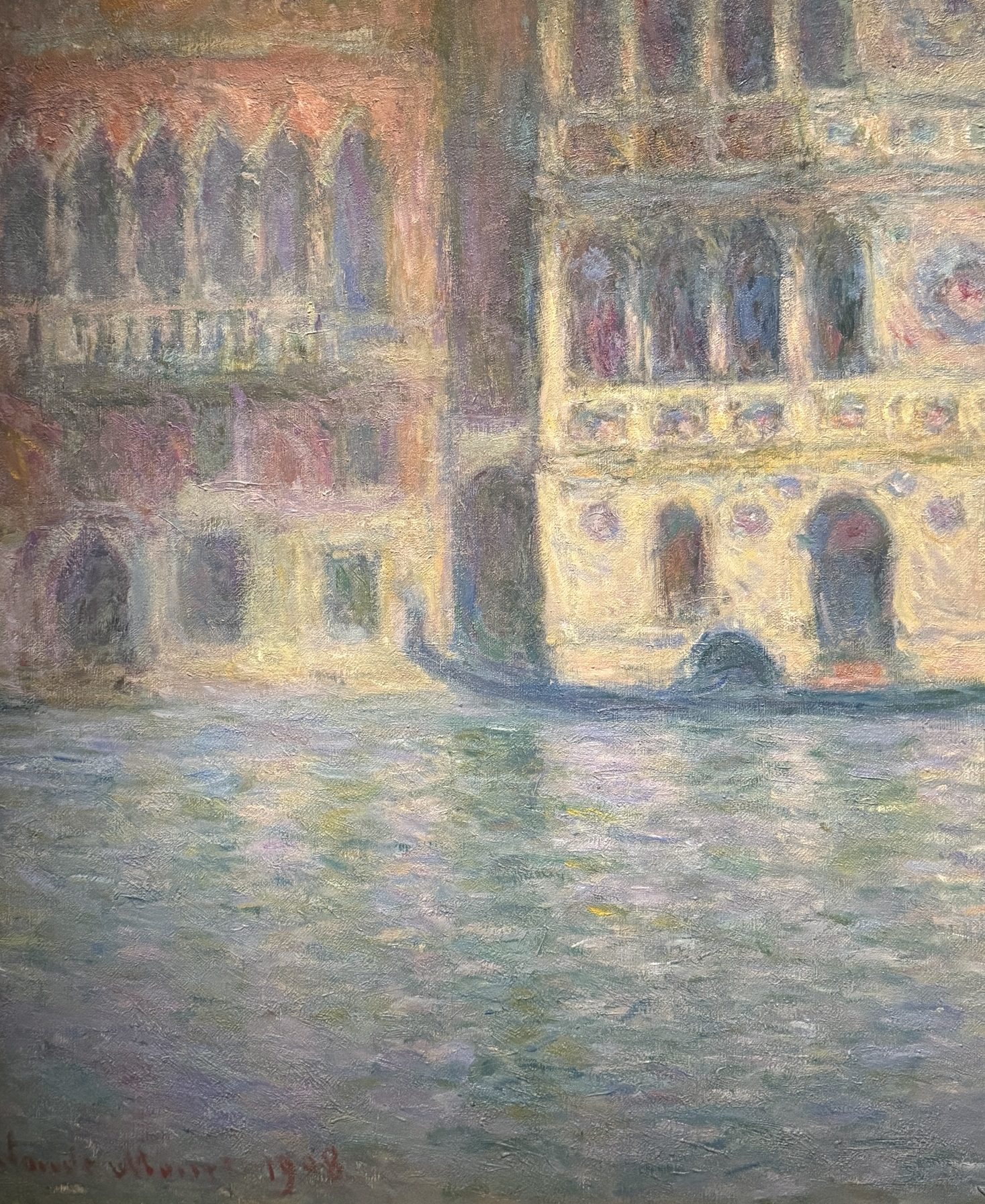While some may argue that the exhibition feels repetitive, given Monet’s preference for a limited palette and recurring stylistic motifs, it nonetheless offers a concise yet thorough assessment of the artist’s time in Venice and his visual reflections on the city. The viewer encounters Monet’s vantage point from an anchored gondola, as well as from various positions along the edges of the canal. The exhibition also places Monet’s work in dialogue with artists who tackled Venice before him, as well as contemporaries such as Renoir, Sargent, and Whistler.